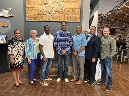 Pictured from left to right: Dr. EvaIyne Bryant-Ward (Secretary/At large Member), Cynthia Kraus (Treasurer/Trustee), Nathan Perry (At Large Member), George Tolson (Trustee), Phillip Jeffers (At Large Member), Earl McJett (Vice Chair/Trustee), Pastor Michael Rogalski (Chair).